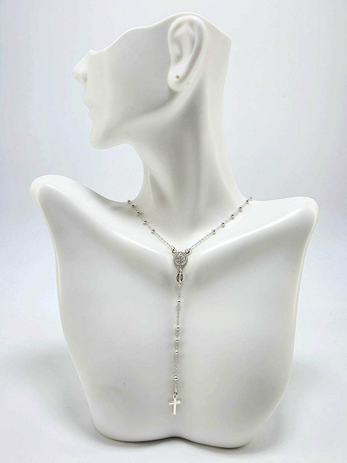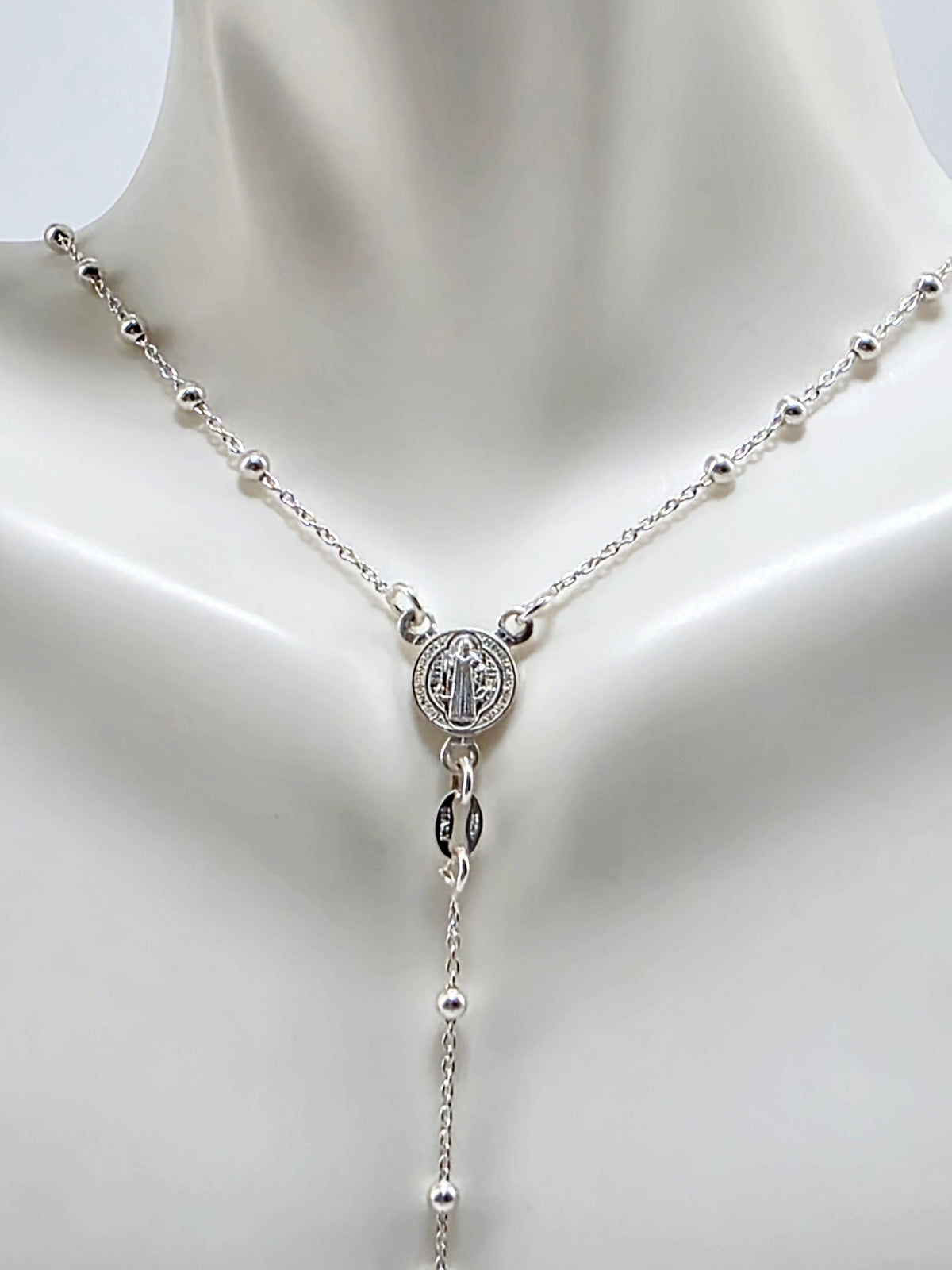 Rosario de San Benito elaborado completamente en plata italiana .925. Esta pieza religiosa destaca por su diseño tradicional y su...
